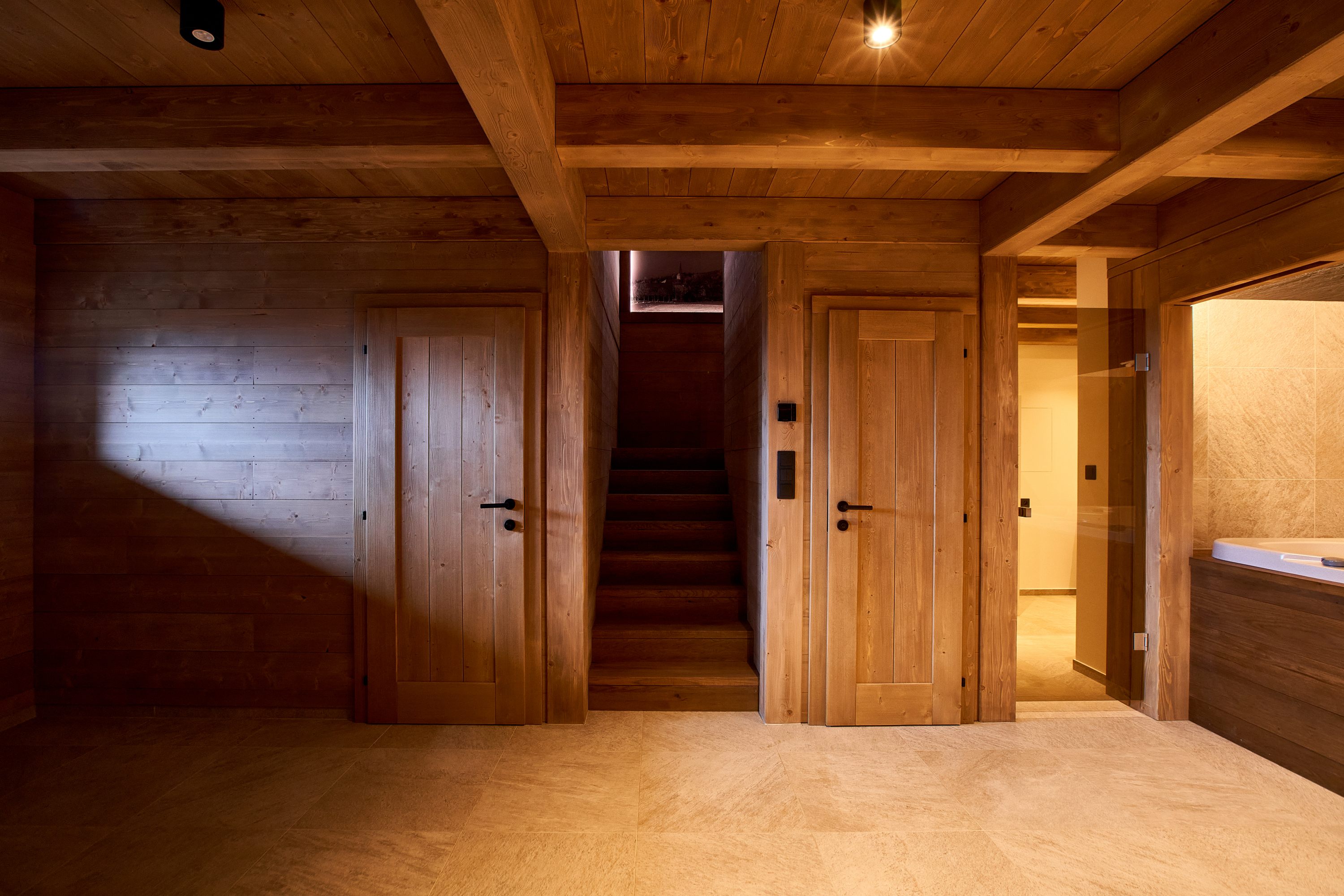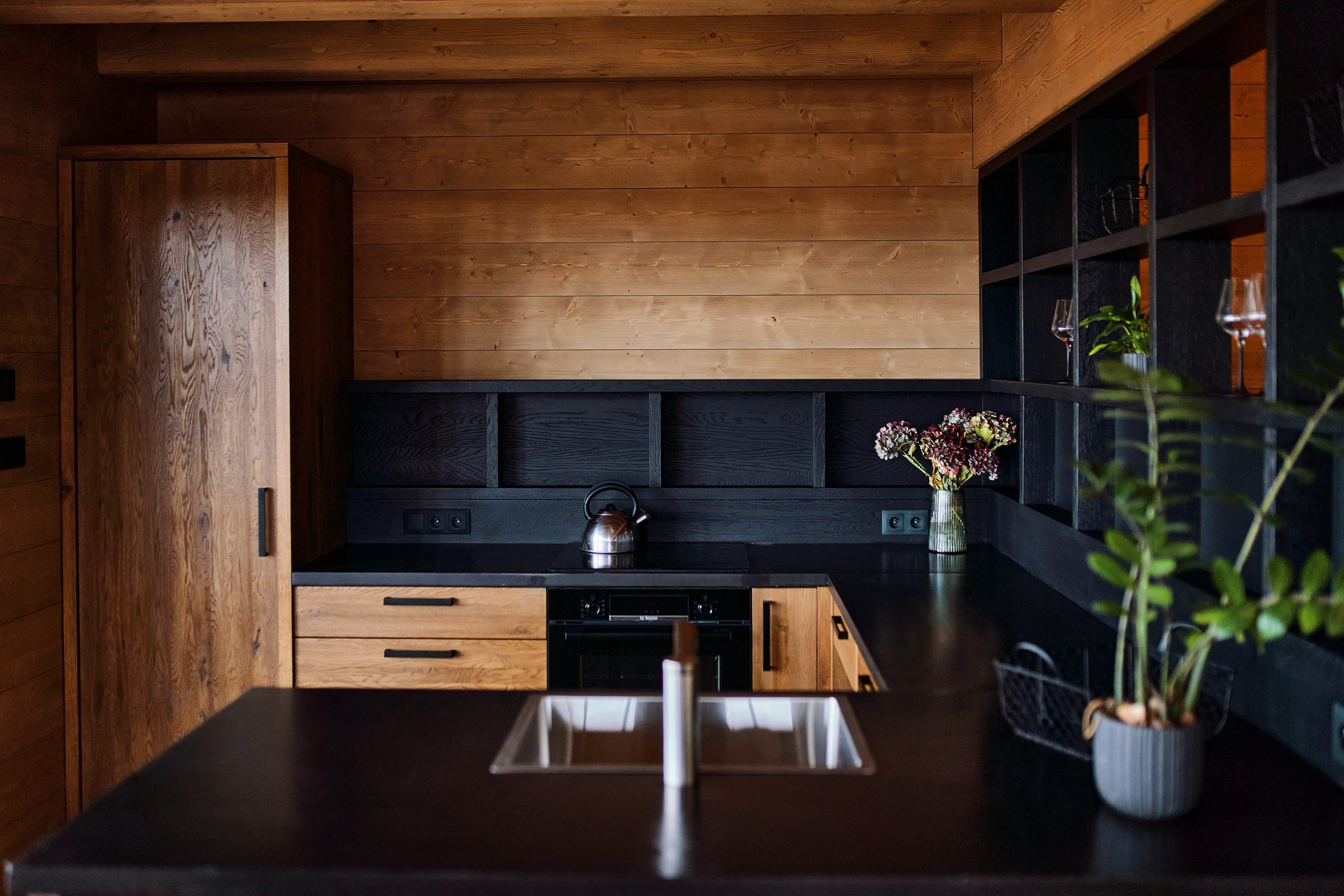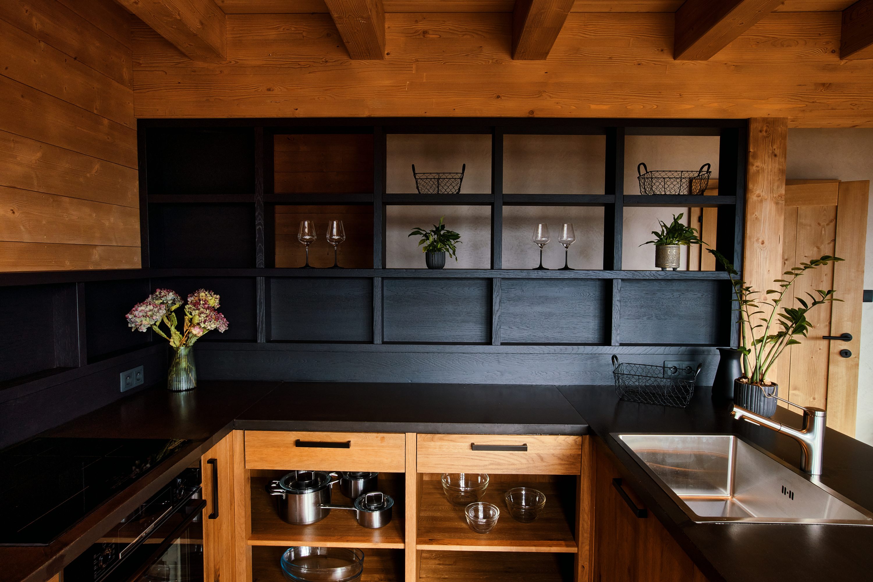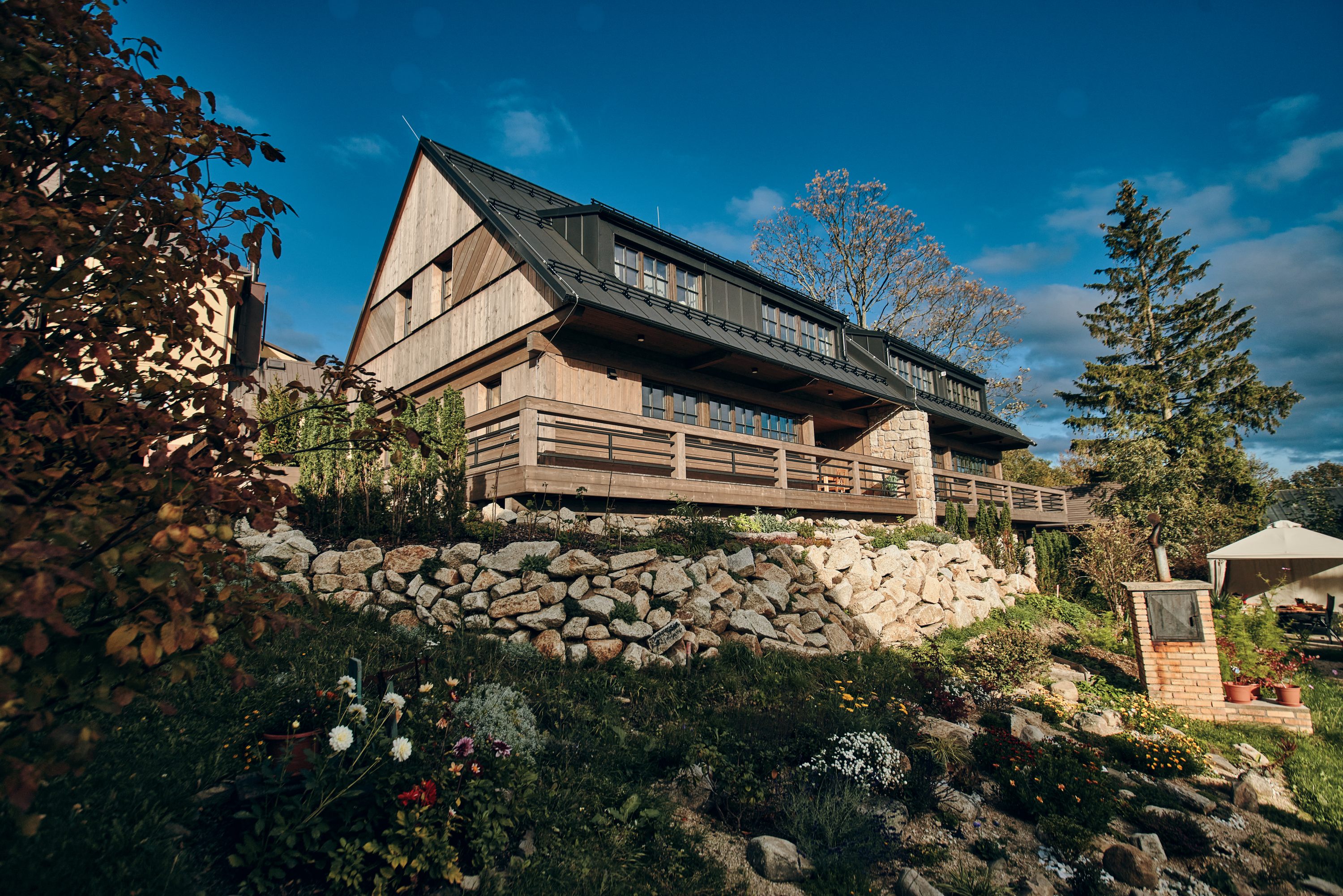Tento projekt byl zajímavou výzvou pro realizaci nestandardního požadavku na návrh moderní řadové chalupy. Jelikož je objekt v zástavbě obce CHKO, museli jsme mimo jiné vycházet z původní zastavěné plochy, ilustrativní fotografie předchozího stavu přikládáme níže. Další výzva tohoto projektu byl vzrostlý javor, kterého nám bylo líto pokácet. I přes všechna možná negativa, která s sebou jeho přítomnost při stavbě přinesla, jsme jej zachovali. A věřte, že naši kolegové všech možných řemesel ho nejednou proklínali :).